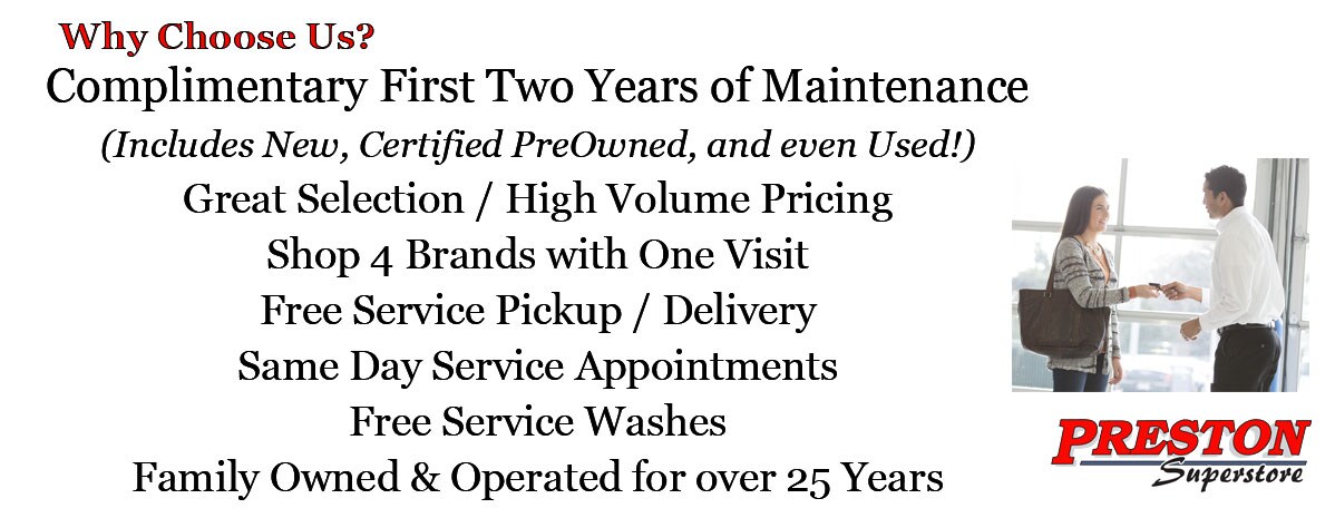 If you have your sights set on a used car, Preston Superstore carries a wide range of options from which to choose. We take just as much pride in our used car selection as we do the vehicles that just rolled off the assembly line. Regardless of what you're after, we guarantee top-notch quality and reliability across the board and will do everything we can to ensure that you drive away satisfied with the vehicle you have chosen.
